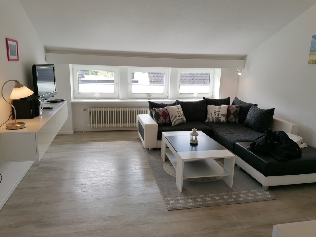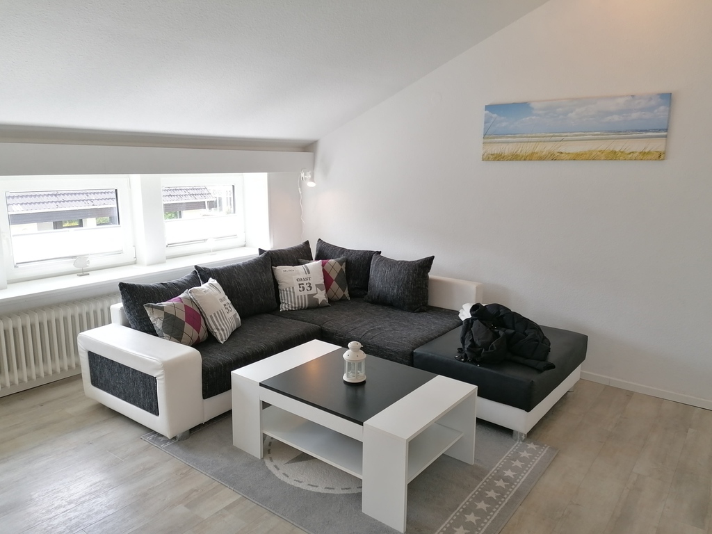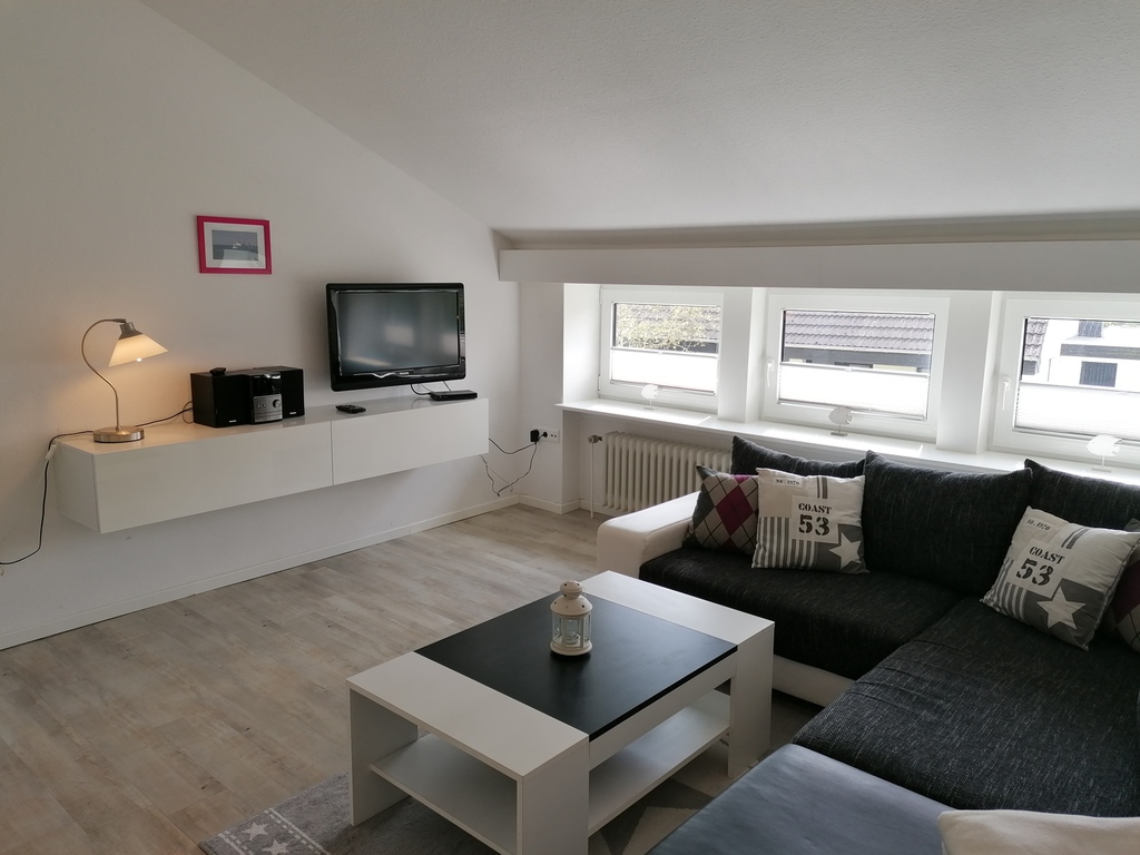 Im Wohnzimmer finden Sie ein gemütliches Sofa , Sat TV, eine kleine Hifi Anlage und den Zugang zum Balkon