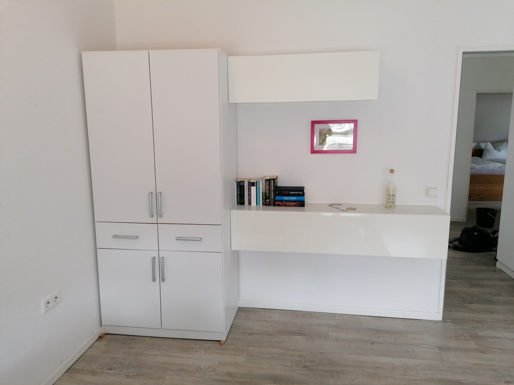 Unsere "obere Oase" ist eine ca 55m² große Wohnung im 1. OG mit Wohnzimmer, Küche, 2 Schlafzimmern, Bad mit Dusche (renoviert Frühjahr 2021) und großem Balkon.